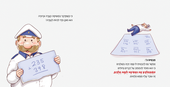 מעבר לכך שהאיורים מדהימים, מאד בולט בהם ההומור, השובבות, המפקד עם השפם שנרדם ומתעלף כל פעם מחדש, הילדה שמנסה 'לדוג' את המשימות שהיא נדרשת להתמודד איתם. הם מעבירים את המסר עם קריצה ברורה ועם יכולת לראות את הכל בעין משעשעת ולא כבדה. אגב, היה תענוג לעבוד עם מרים, ציירת צעירה אבל מקצועית ואדיבה, ממליצה בחום!"