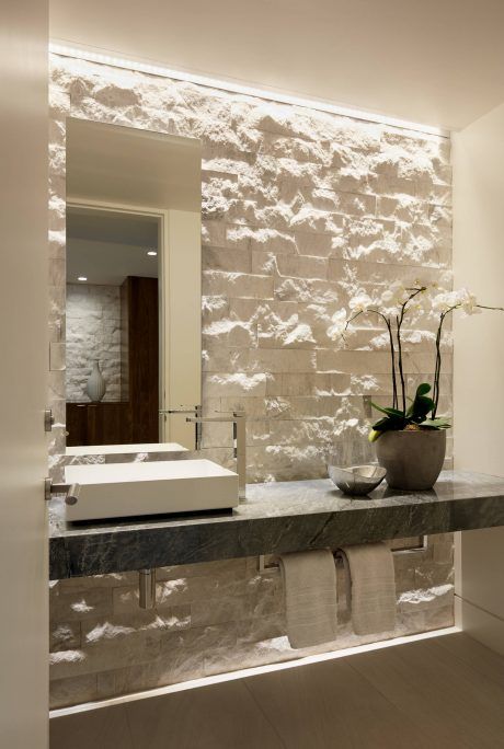 חיפוי קיר וכיור עשויים שיש בחדר אמבטיה/ מקור